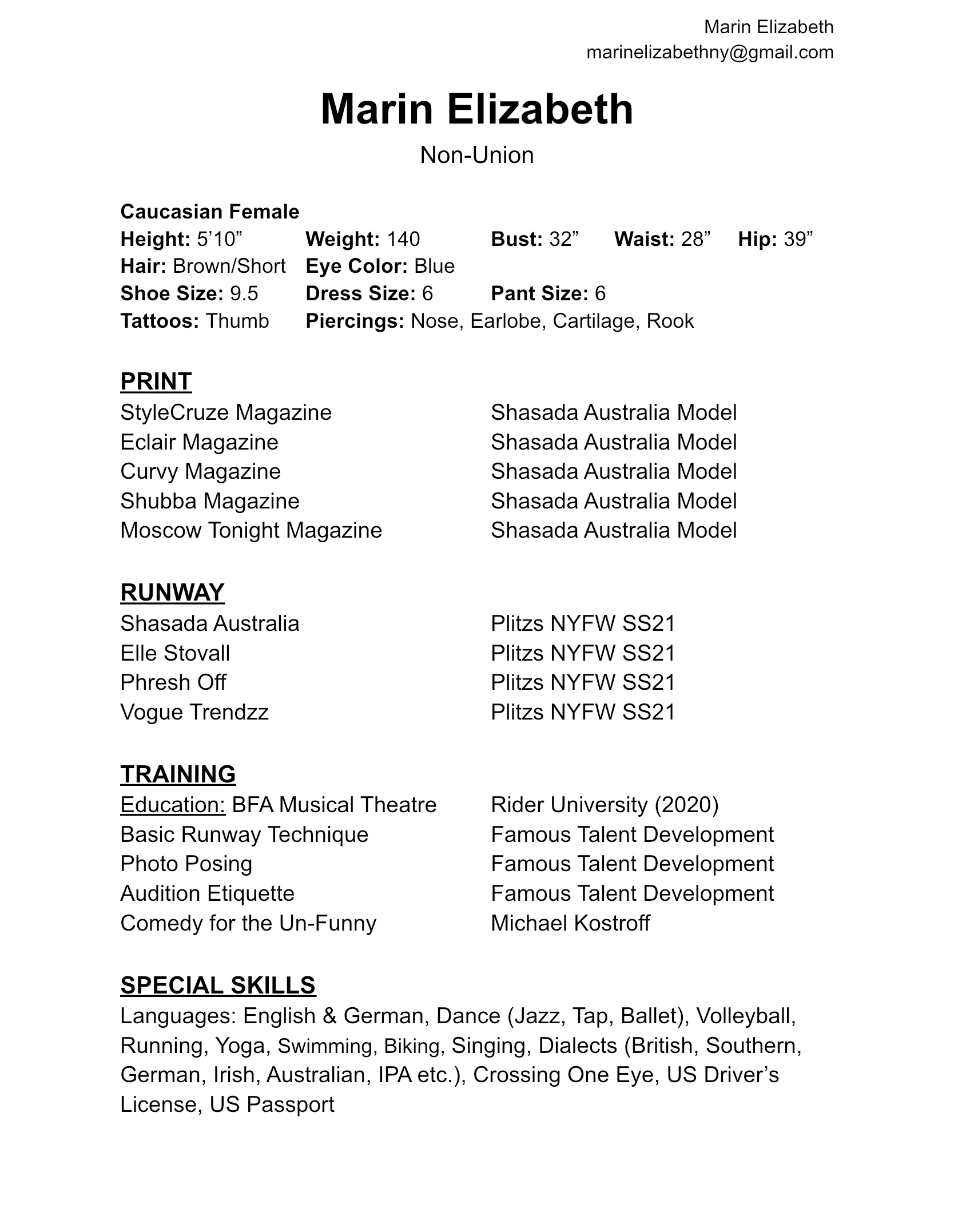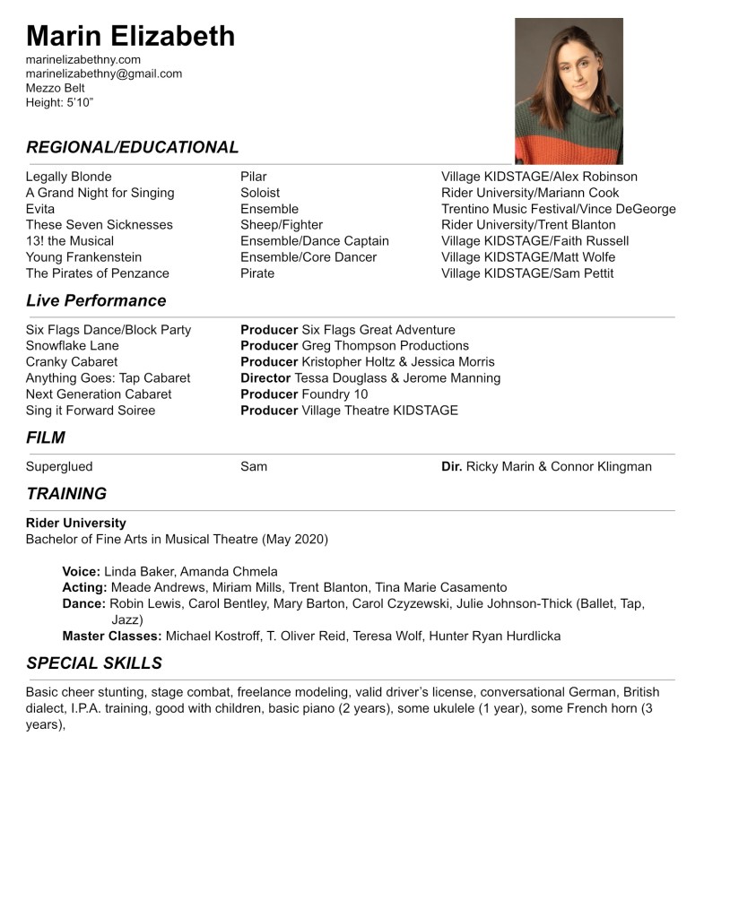 Headshot & Resume Marin Elizabeth HeadshotDownload Marin Elizabeth HeadshotDownload Marin Elizabeth Headshot Download Marin Elizabeth Theatre ResumeDownload Marin Elizabeth Modeling ResumeDownload Share this: Click to share on X (Opens in new window) X Click to share on Facebook (Opens in new window) Facebook Like Loading...